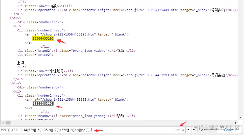 直接Chrome浏览器,F12打开开发者工具 → 切换到Source选项卡 → Ctrl + Shift + F,输入正则表达式,如: