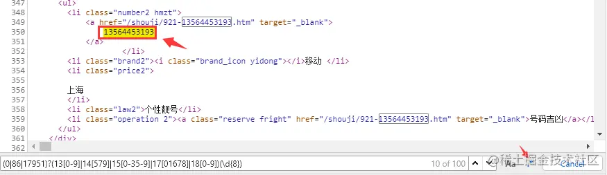 而使用正则,只需写一个匹配表达式 \d+,即可实现同样的匹配结果,代码示例如下: