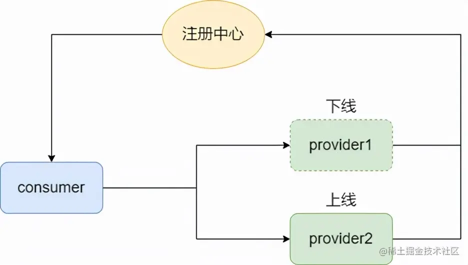 - 如果consumer不能从注册中心获取到provider2和provider3,那么在容灾情况下,provider1挂了,不能故障转移到provider1和provider2