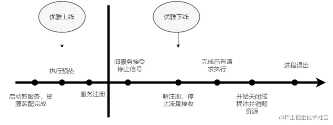 在微服务架构体系中,理想的优雅上下线过程应该是像下面这样: