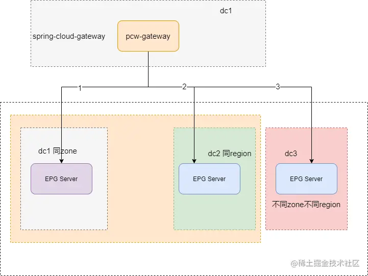 - 各consumer能获取到其他dc的实例列表,也就是注册中心需要支持多dc