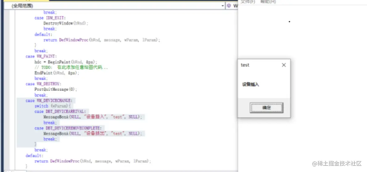 Windows sdk开发中,任何一个窗口都能接收消息并响应。同理 BadUSB或U盘插入或拔出也会有相应的消息与响应。
