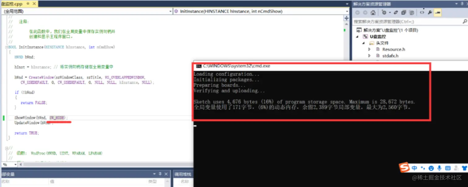 既然当BadUSB插入之后,会响应消息函数,那让消息函数执行arduino命令行并进行自动烧录。当红队后期做更改BadUSB的时候,就会执行我们烧录的代码