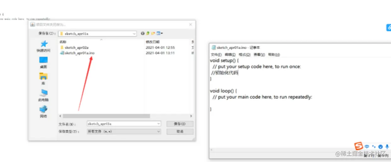 sketch_apr01a为项目文件,而在上层还要有一个sketch_apr01a名字的目录
