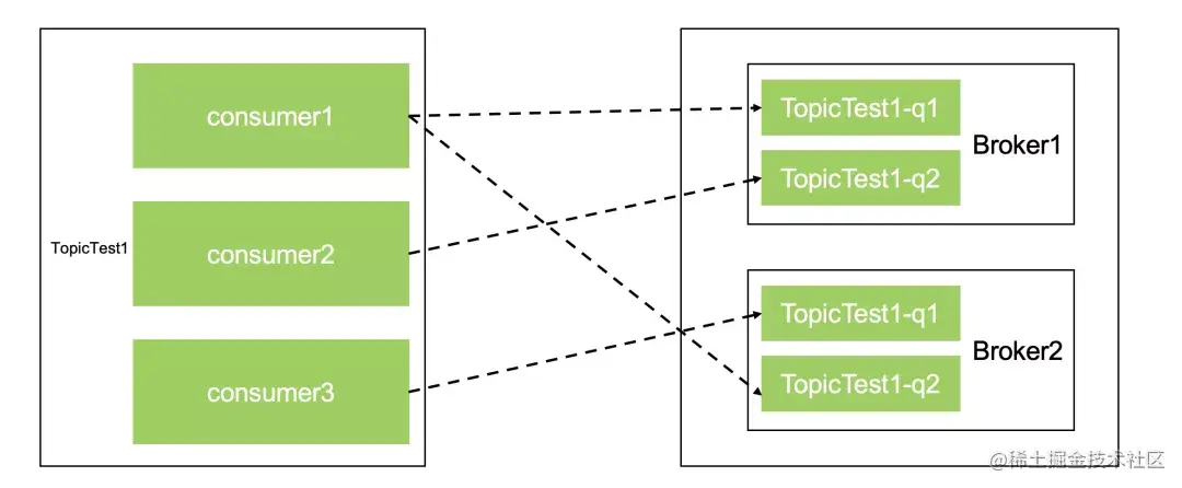 这里有个小问题:可以一直增加客户端的数量提升消费能力吗?当然不可以,因为 Queue 数量有限,客户端数量一旦达到 Queue 数量,再扩容新节点无法提升消费能力,因为会有节点分配不到 Queue 而无法消费。