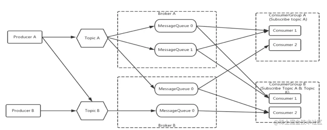 - 无状态,offset 信息 Broker 维护,客户端与 Queue 无绑定。