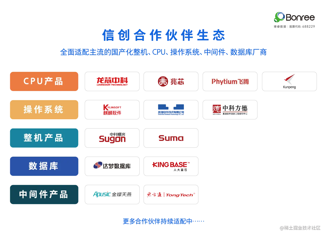 未来,博睿数据将持续专注技术和服务的打磨,一如既往的加强与产业链上下游企业合作,与国产软硬件合作伙伴共同打造完善的生态环境,为企业提供创新性的APM解决方案,构建国产化系统生态圈,驱动企业数字化转型的高质量发展!