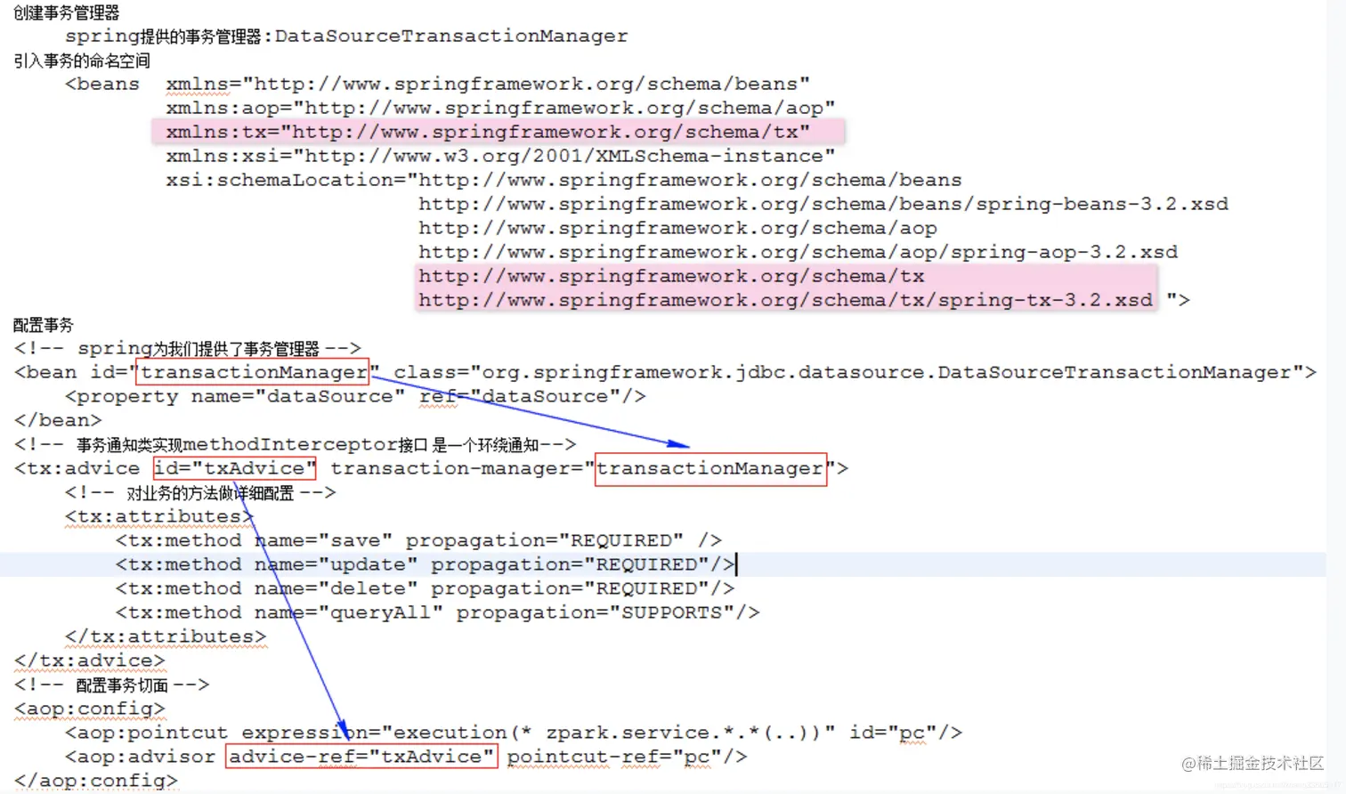 <tx:advice id="txAdvice" transaction-manager="transactionManager">
