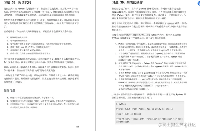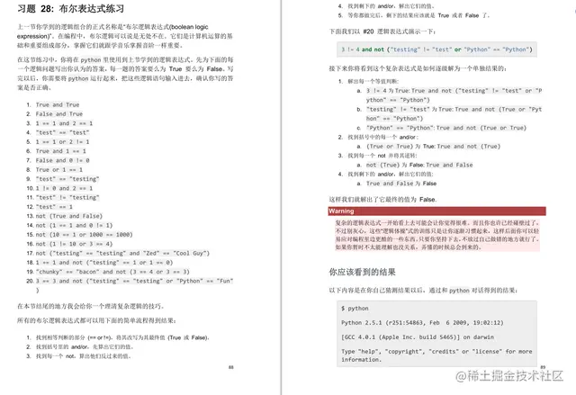 本书的结构非常简单,其实就是 52 个习题。其中 26 个覆盖了输入输出、变量、以及函数三个课题,另外 26 个覆盖了一些比较高级的话题,如条件判断、循环、类和对象、代码测试、以及项目的实现等。每一章节的格式基本都是一样的,以代码练习题开始,读者照着说明编写代码(不允许复制粘贴),运行并检查结果,然后再做一下加分习题就可以了。当然如果你觉得加分习题对你来说有点难,你也可以暂时跳过,以后再完成也没关系