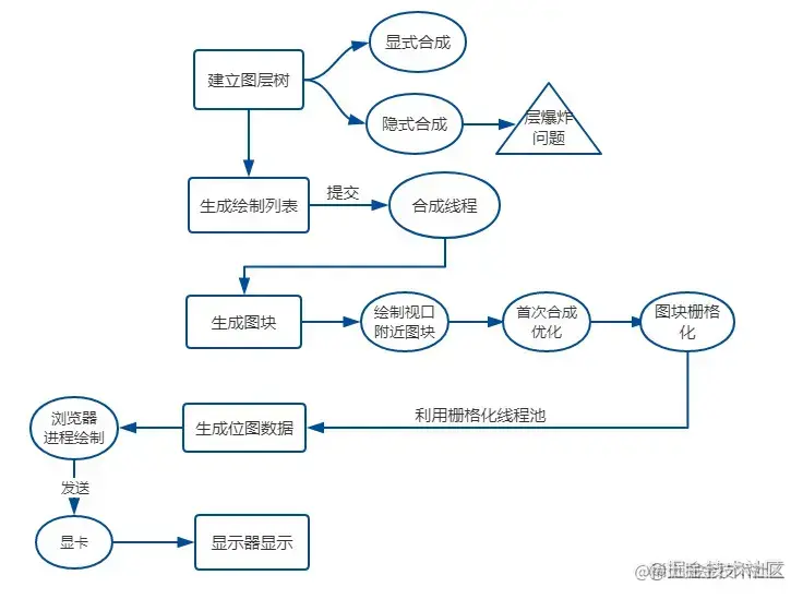 还有一种情况,是直接合成。比如利用 CSS3 的transform、opacity、filter这些属性就可以实现合成的效果,也就是大家常说的GPU加速。