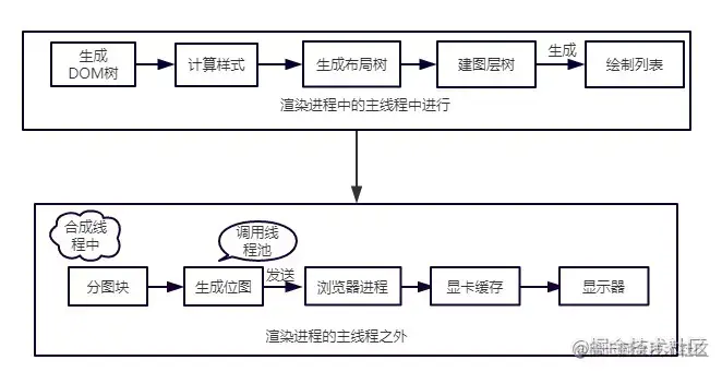 顺便提醒一点,渲染进程中专门维护了一个栅格化线程池,专门负责把图块转换为位图数据。
