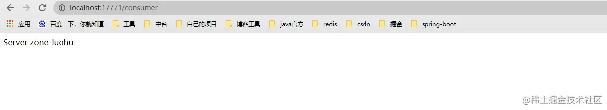在浏览器访问该端点,无论怎么刷新都会输出Server zone-louhu,说明请求一直打到了Server-02
