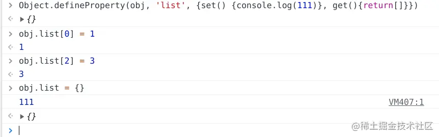 obj.list.a = 1对于obj.list是rhs也就是get操作,没有对obj.list做set操作,拦截器是对属性做set操作,所以拦截不到