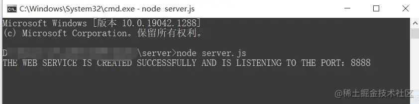 THE WEB SERVICE IS CREATED SUCCESSFULLY AND IS LISTENING TO THE PORT:8888 则服务器启动成功。在运行项目期间,不能关闭该窗口。