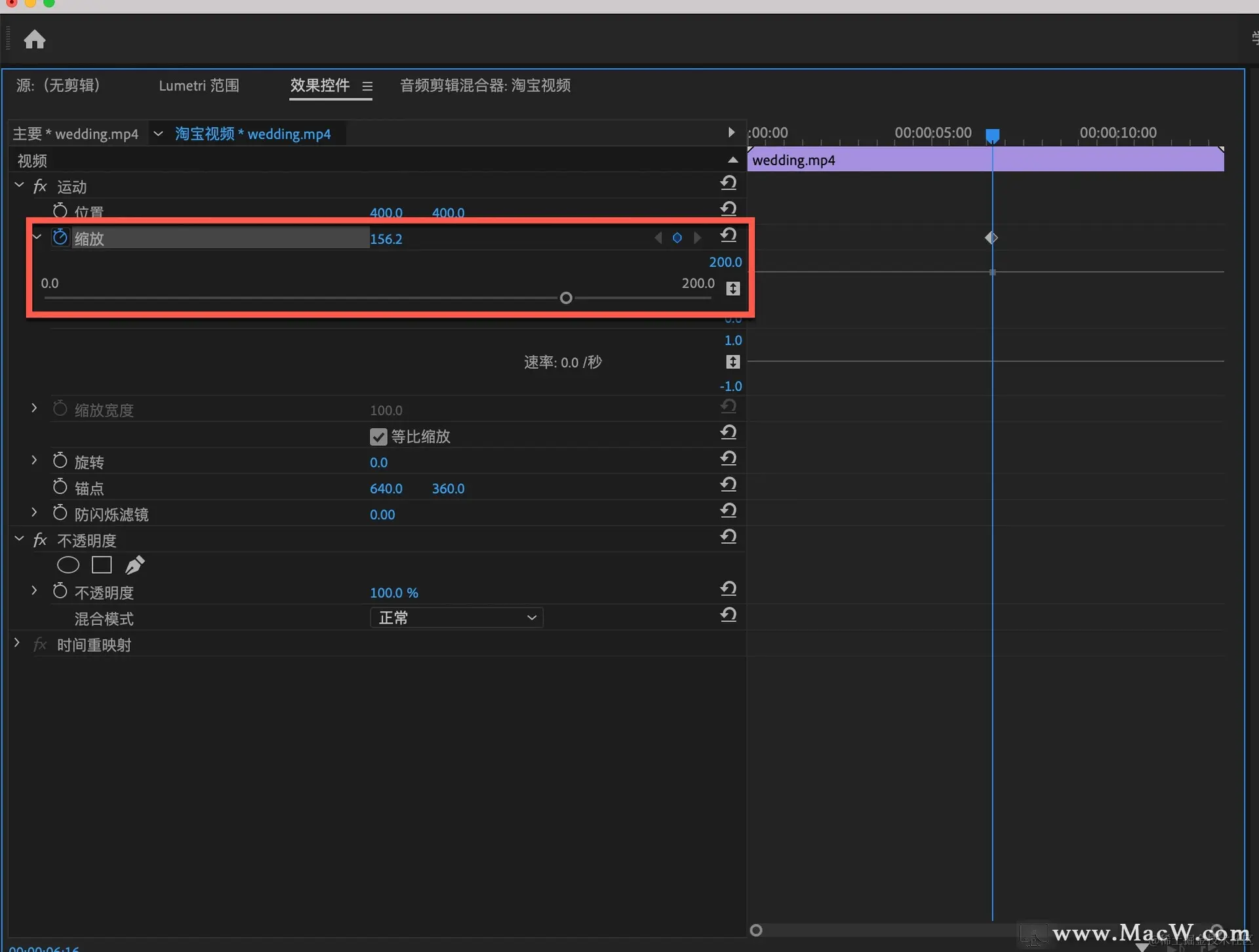 在效果控件的运动中,找到缩放并把画面调整到合适大小