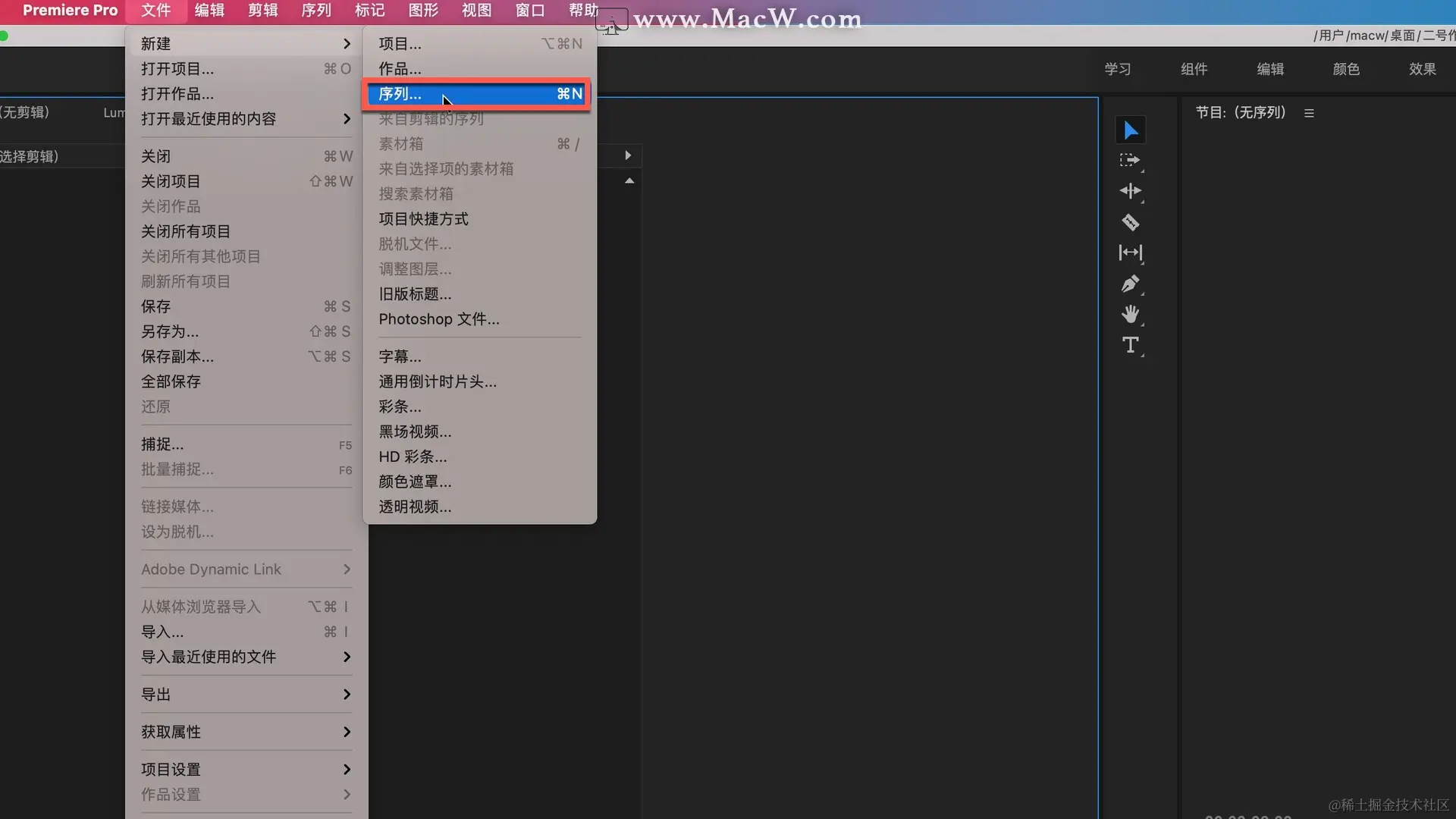 首先,打开premiere,点击菜单栏文件-新建-序列...