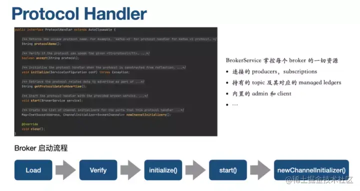 Protocol Handler 其实是一个接口,我们可以实现自己的 Protocol Handler。Broker 的启动流程: