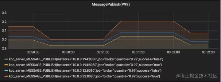 最后是 MessagePublish 是 Bookie 的延时,即单个分区的消息从异步发送开始,到成功写入 Bookie 的时间。监控结果较理想,所以近期我们会研究 GC 的问题来源。
