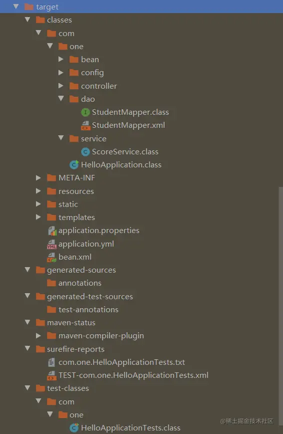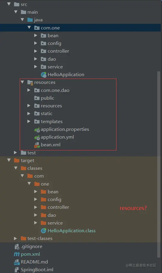 重新打包后 mvn clean package,target 目录下终于出现了编译后的 resources 目录!