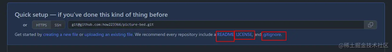 推荐创建README、LICENSE、.gitignore三个文件