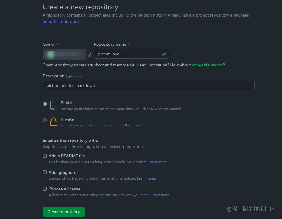 这里把仓库设置成public