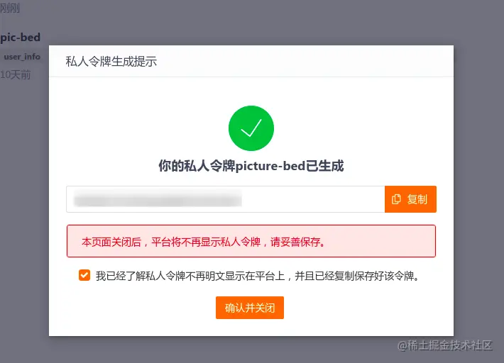 复制私人令牌(就是之后要用的token)确认关闭