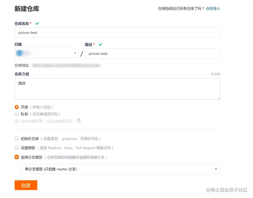 新建仓库