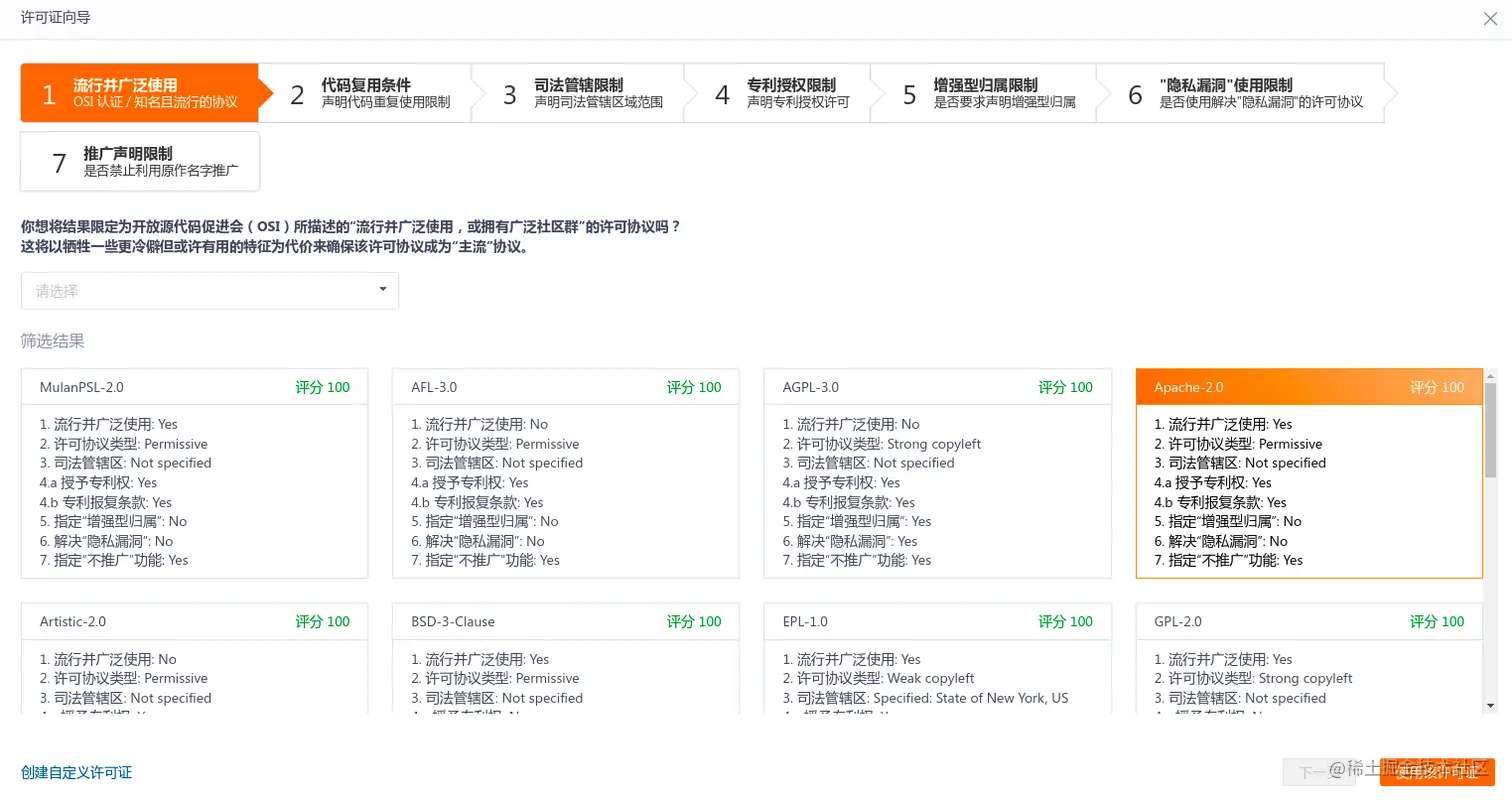 选择Apache2.0协议