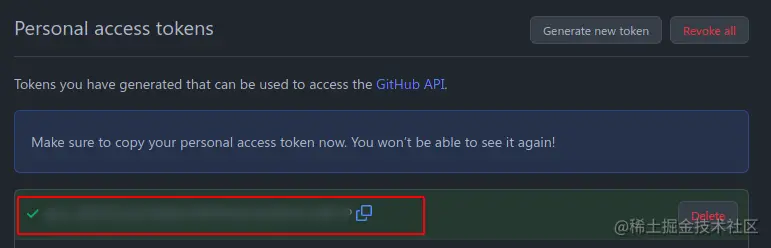 复制保存私人令牌(以后用的tokens)