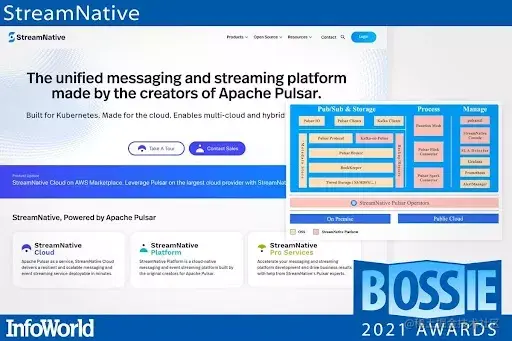 近期,著名国际科技媒体 InfoWorld 发布「2021 年度最佳开源软件」榜单,StreamNative 荣获最佳开源软件公司称号。InfoWorld 发布的年度最佳开源软件榜单是重要的风向标,到今年已是第 15 届,过往奖项均授予开源软件和开源项目。今年有些不同,同样也授予了在开源项目和社区具有突出贡献的组织和团队。StreamNative 获得此次殊荣,表明了行业专业人士对于 StreamNative 团队及平台的高度认可。