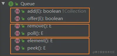 - (4)Queue接口没有定义阻塞队列的方法,这些方法在BlockQueue接口中定义了。