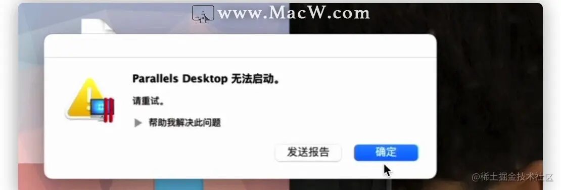 在使用Parallels Desktop 虚拟机的时候,启动时出现以下错误消息: