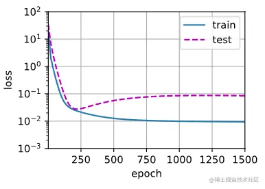 labels[:n_train], labels[n_train:], num_epochs=1500)