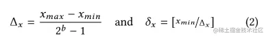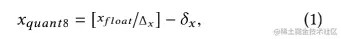 让 表示浮点输入 x,而 TensorFlow 量化后的 8bit 数值表示为 ,则其计算公式如下:
