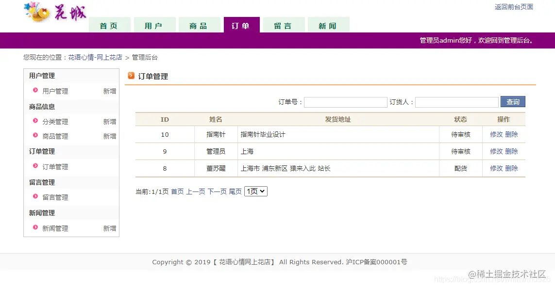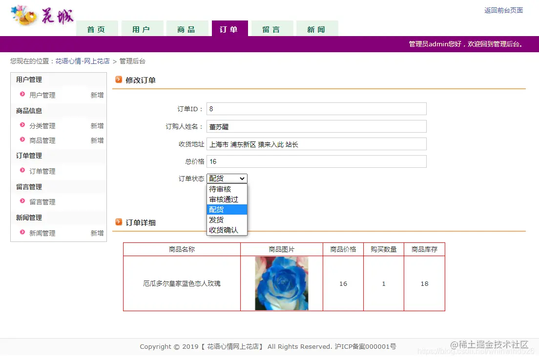 以上就是展示的本网上花店商城系统的部分功能,系统功能完整,页面简洁大方,适合做毕业设计或课程设计使用。