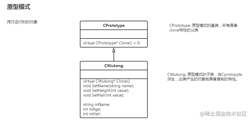 通过原型模式基类规范具备复制接口的子类实现。