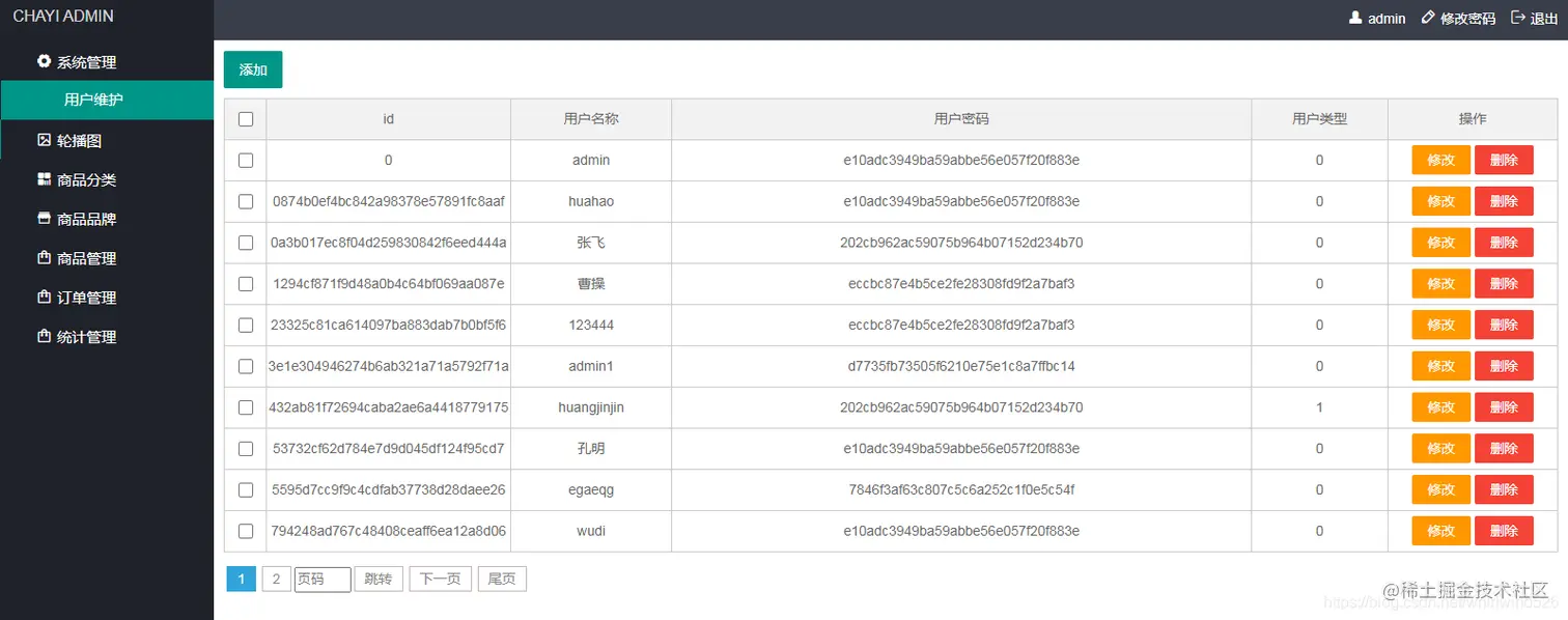后台管理功能展示