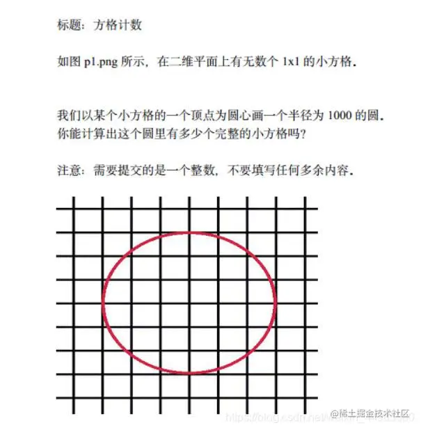 其中在这一道题中比较容易出错的一个地方是,万望各位会有小伙伴们按照传统的思想去将整个圆形的半径或直径直接拿去计算,然后根据对称原则对计算出二分之一部分的方格数或者四分之一的方格数,然后再乘以相应的倍数来求解,其实这样的想法是没有错的,但是在对于这一道题来说,这样的解法就行不通了,因为弧形所在范围是不确定的,占用每一个方格的大小也是不确定的,所以并不能据此进行估算