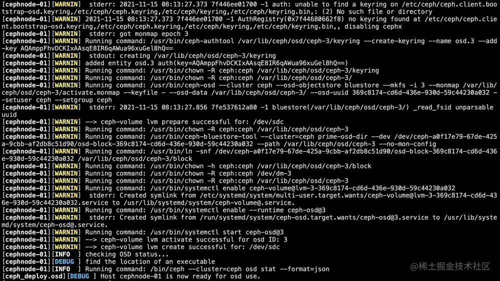 ceph-deploy --overwrite-conf osd create cephnode-01 --data /dev/sdc
