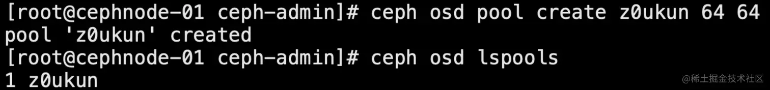 ceph osd pool create z0ukun 64 64