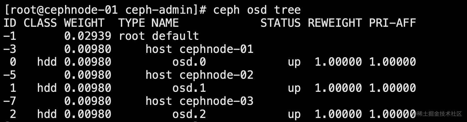 查看osd列表 ceph osd tree