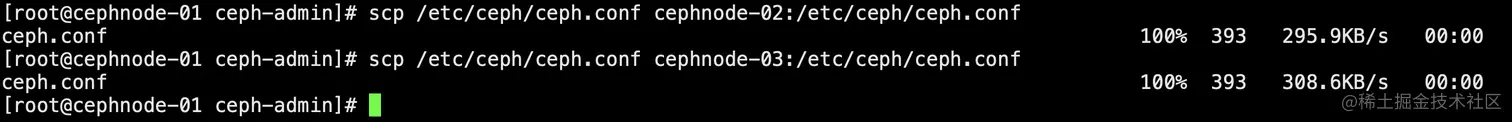 scp /etc/ceph/ceph.conf cephnode-03:/etc/ceph/ceph.conf