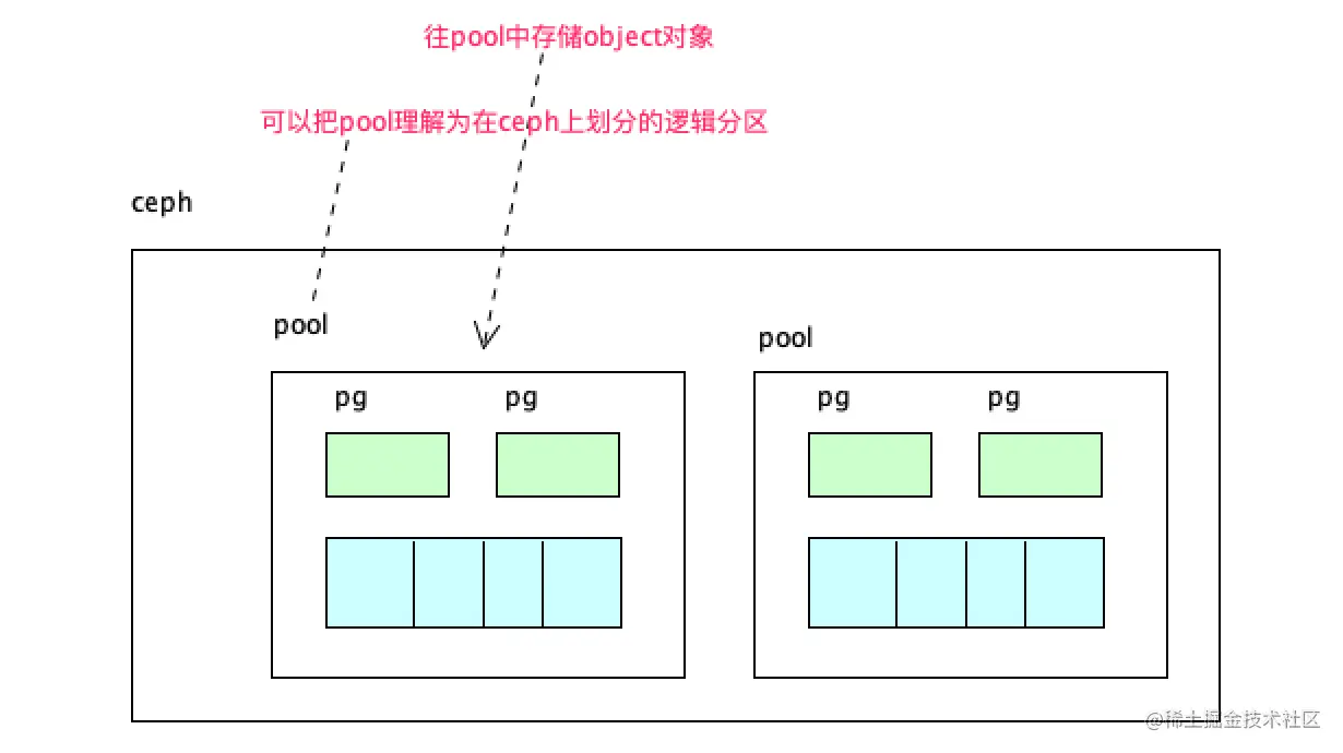 可以把 pool 理解为存储object数据的逻辑单元