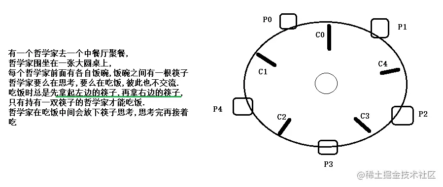 //吃饭需要先拿左边筷子,这根筷子就是被当前哲学家独占使用