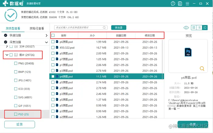 很多原因都会导致ps文件丢失,比如系统故障、PS崩溃、忘记保存文件就直接关闭程序、意外断电等等。要恢复ps文件,就要先恢复psd文件。