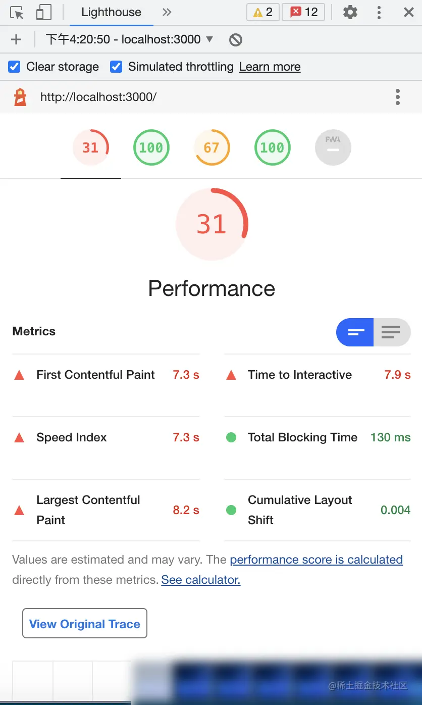 点击“Generate report”按钮,等待检查完成后会显示评分报告。