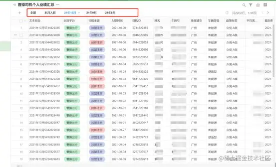 3.配置报表视图,不同维度展示数据。图为曹操租车平台司机个人业绩报表,司机可以在统计表里直接查询个人数据,而对应负责人只需要查看每月的统计报表即可。