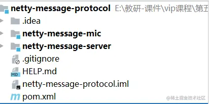 - netty-message-mic : 表示协议模块。