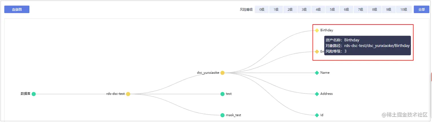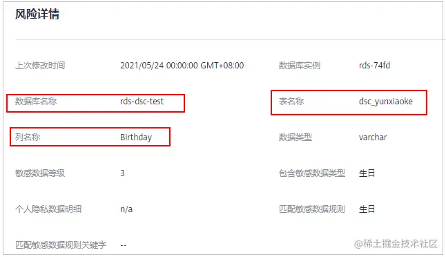 由上图可见,Birthday和Email列被识别为敏感数据风险。