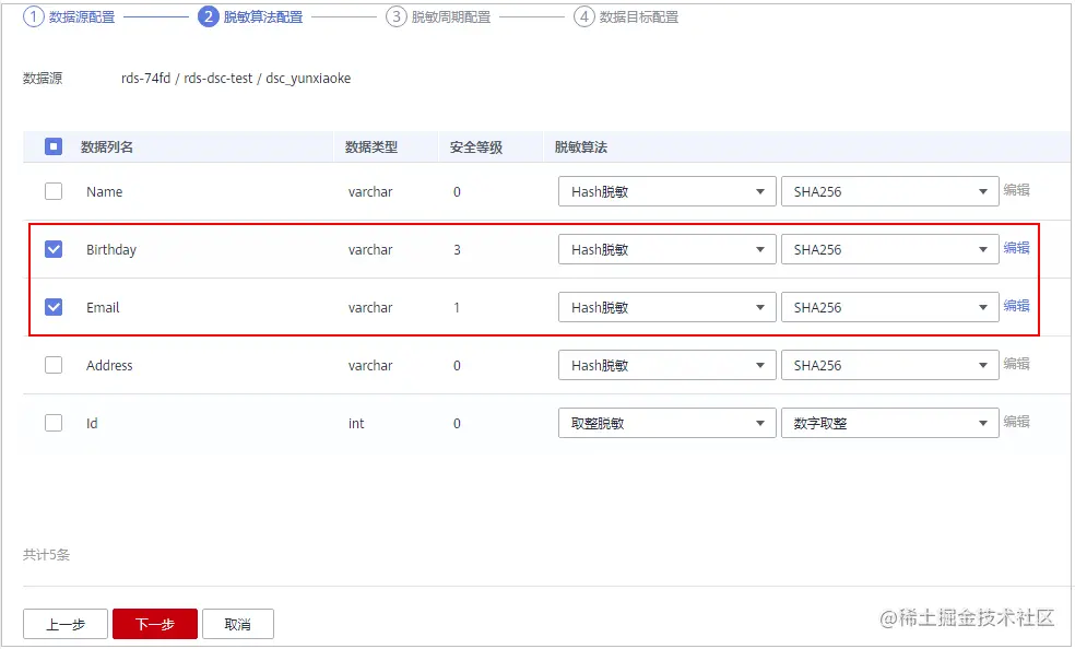 步骤 4 单击“下一步”,进行“脱敏算法配置”。